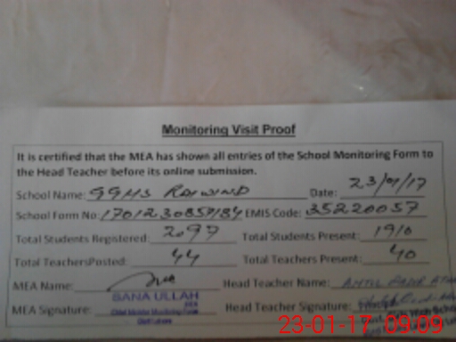 | Certified that this School was Inspected by the Undersigned MEA/DMO Today and the Information Stated Above is as Per Record. | |||||