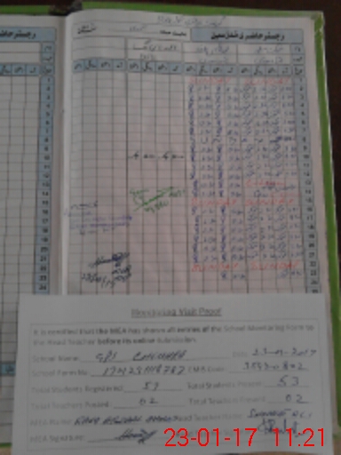 | Attendance Register | Head Teacher | MEA with School | Visit Proof |