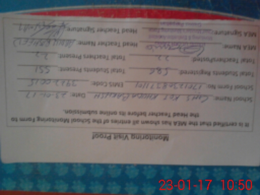 | Certified that this School was Inspected by the Undersigned MEA/DMO Today and the Information Stated Above is as Per Record. | |||||