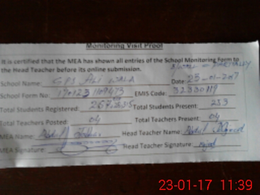 | EMIS Code: 32330119 | Name of School: GPS ALI WALA | |||