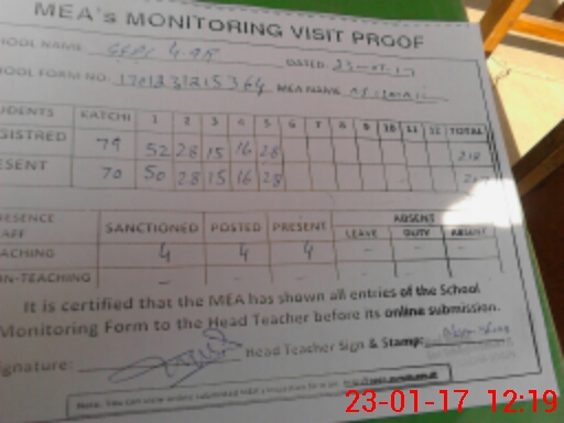 | Attendance Register | Head Teacher | MEA with School | Visit Proof |