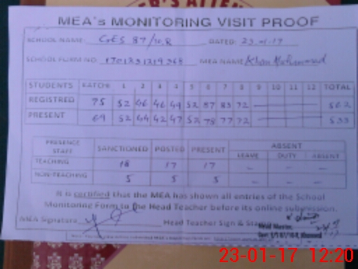 | EMIS Code: 36420066 | Name of School: GES 87/10-R, KHANEWAL | |||