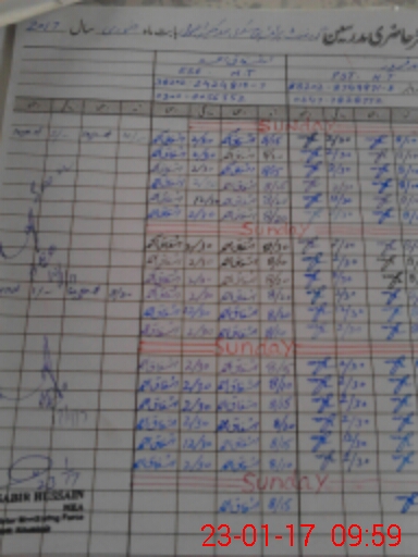 | CNIC | Full Name | Designation | R/C | Absence During Last Calender Month |