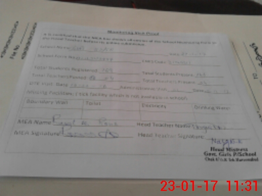 | Certified that this School was Inspected by the Undersigned MEA/DMO Today and the Information Stated Above is as Per Record. | |||||