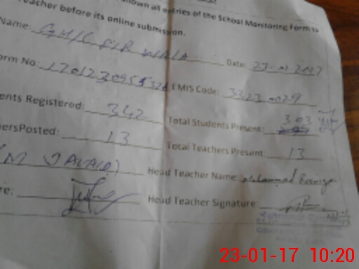 | EMIS Code: 33230029 | Name of School: GHS PIR WALA | |||