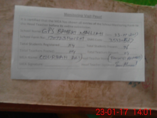 | EMIS Code: 35430587 | Name of School: GPS BAMBKI MALLIAN | |||