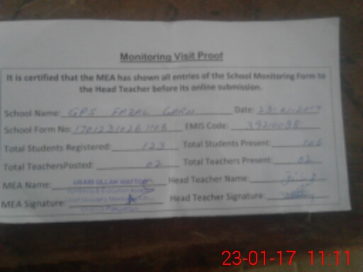 | EMIS Code: 39210088 | Name of School: GES FAZAL GARH P.O BOYLE GANJ | |||