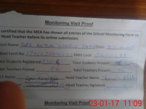 | EMIS Code: 36110228 | Name of School: GPS KOTLA WARIS SHAH | |||