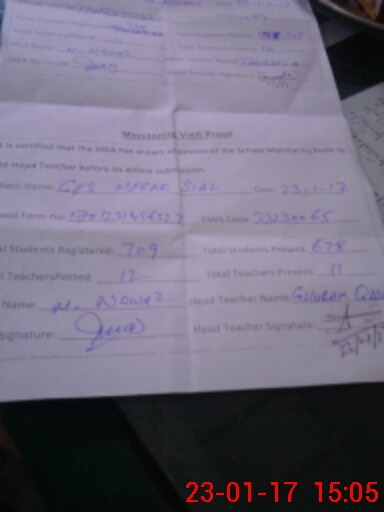 | Attendance Register | Head Teacher | MEA with School | Visit Proof |