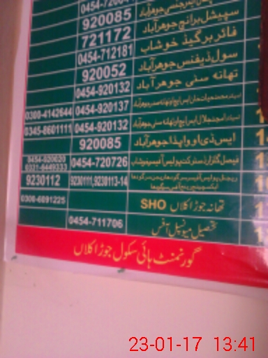| District: KHUSHAB | Tehsil: NOORPUR THAL | Markaz: JURA KALAN (EAST) (MALE) | Level: High | |