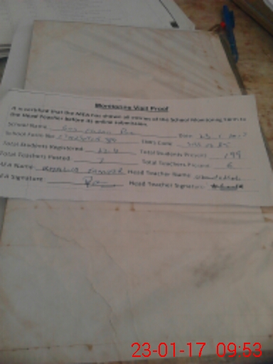 | Attendance Register | Head Teacher | MEA with School | Visit Proof |