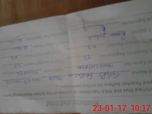 | Name: Sh**** Sh**** Designation: (School Headmaster's/Headmistress's) PST Phone/Cell Number: 03**** |