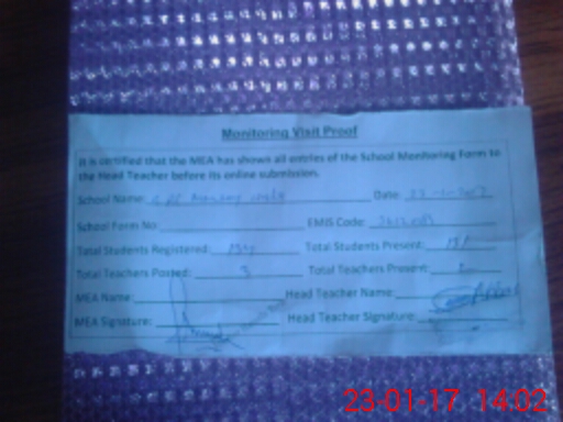 | Attendance Register | Head Teacher | MEA with School | Visit Proof |