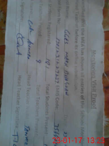 | Certified that this School was Inspected by the Undersigned MEA/DMO Today and the Information Stated Above is as Per Record. | |||||