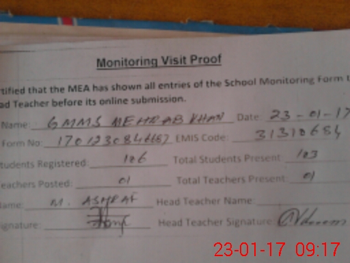 | EMIS Code: 31310684 | Name of School: GPS MEHRAB KHAN | |||