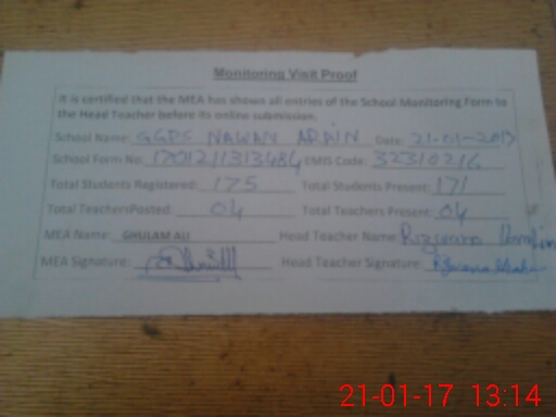 | EMIS Code: 32310216 | Name of School: GGPS NAWAN ARAIN | |||