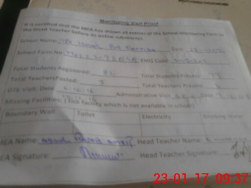 | Name: At**** Mu**** Designation: (School Headmaster's/Headmistress's) PST Phone/Cell Number: 03**** |