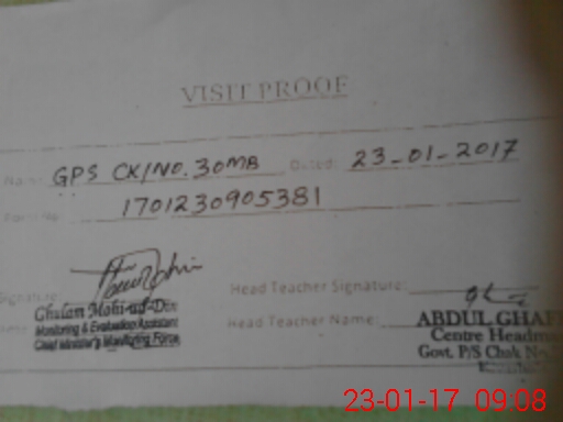 | EMIS Code: 38230482 | Name of School: GPS CHAK NO. 30 MB | |||