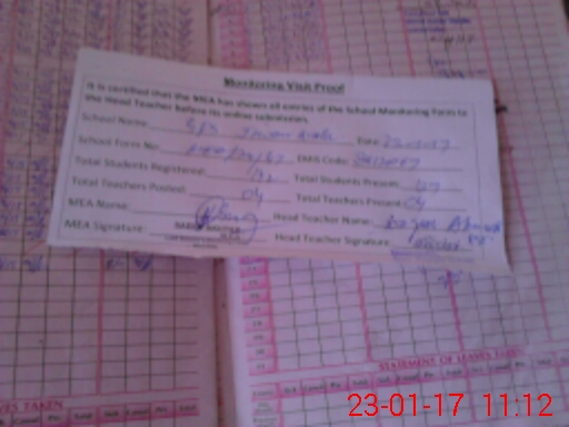 | Attendance Register | Head Teacher | MEA with School | Visit Proof |