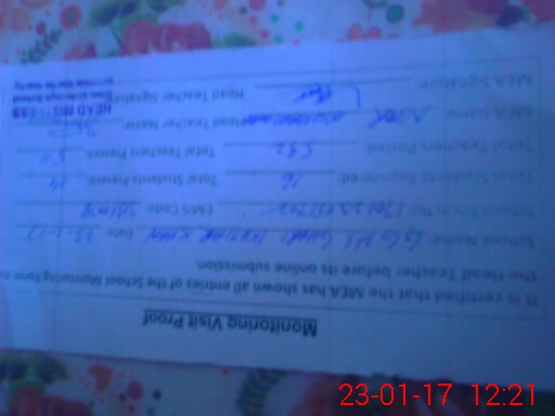 | Attendance Register | Head Teacher | MEA with School | Visit Proof |