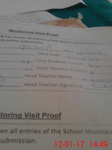 | Attendance Register | Head Teacher | MEA with School | Visit Proof |