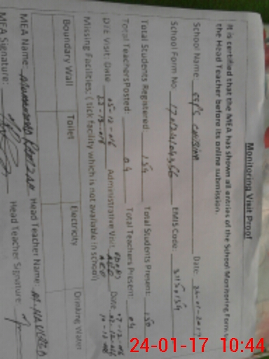 | Certified that this School was Inspected by the Undersigned MEA/DMO Today and the Information Stated Above is as Per Record. | |||||