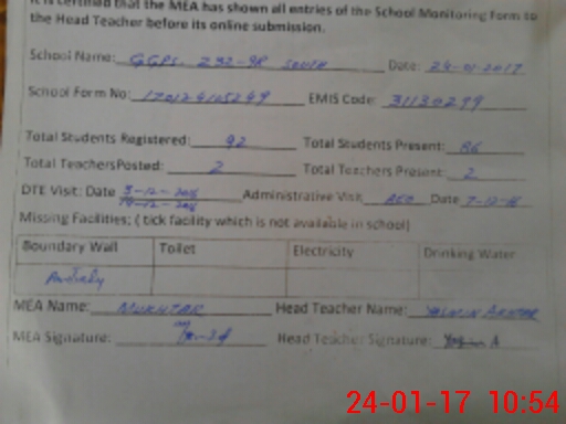 | Certified that this School was Inspected by the Undersigned MEA/DMO Today and the Information Stated Above is as Per Record. | |||||