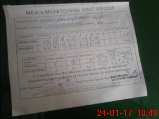 | Attendance Register | Head Teacher | MEA with School | Visit Proof |