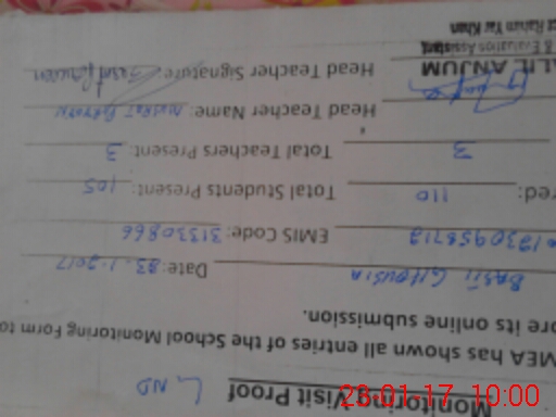| Name: Mu**** Pe**** Designation: (School Headmaster's/Headmistress's) EST Phone/Cell Number: 03**** |