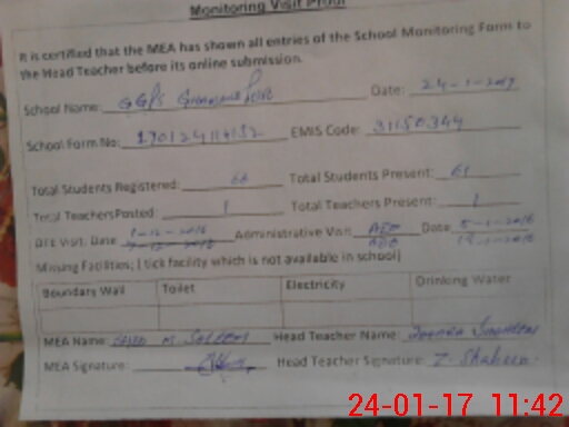 | Certified that this School was Inspected by the Undersigned MEA/DMO Today and the Information Stated Above is as Per Record. | |||||