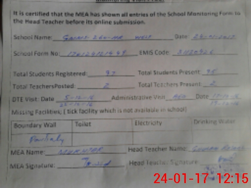 | EMIS Code: 31130426 | Name of School: GPS CHAK NO.260/HR WEST | |||