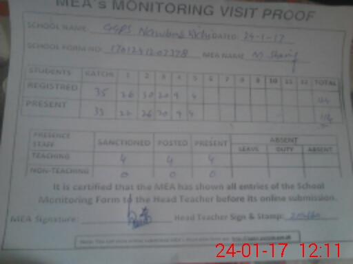 | EMIS Code: 36430383 | Name of School: GGPS NAWAB KHICHI, TULAMBA | |||