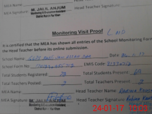 | EMIS Code: 31330752 | Name of School: GGPS BASTI JAM ALLAH DAR PANWAR | |||