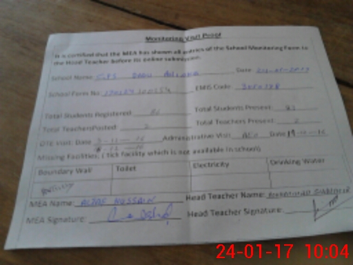 | Attendance Register | Head Teacher | MEA with School | Visit Proof |