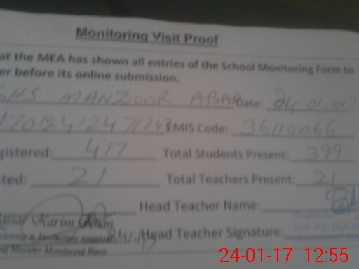 | Certified that this School was Inspected by the Undersigned MEA/DMO Today and the Information Stated Above is as Per Record. | |||||