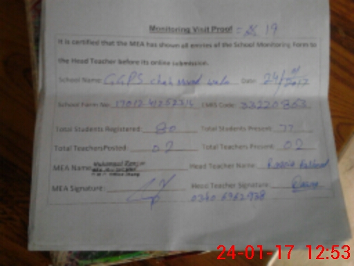 | Attendance Register | Head Teacher | MEA with School | Visit Proof |