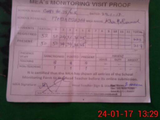 | Certified that this School was Inspected by the Undersigned MEA/DMO Today and the Information Stated Above is as Per Record. | |||||