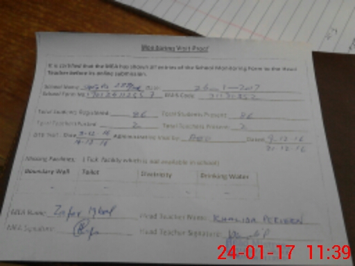 | Attendance Register | Head Teacher | MEA with School | Visit Proof |