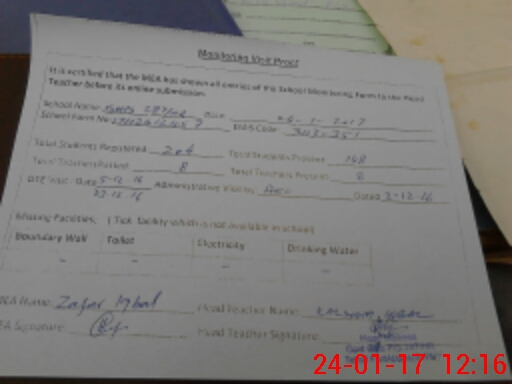 | Monitoring Date: 24-01-2017 | Start Time: 24-01-2017 11:50 AM | End Time: 24-01-2017 12:31 PM | Name of MEA: Za**** Iq**** BN**** | |