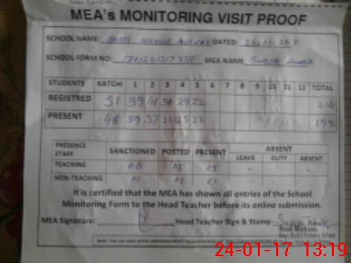 | Certified that this School was Inspected by the Undersigned MEA/DMO Today and the Information Stated Above is as Per Record. | |||||