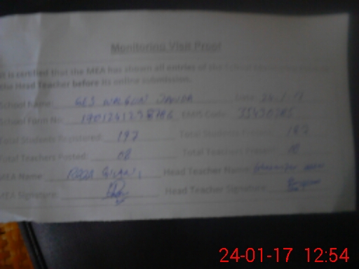 | Attendance Register | Head Teacher | MEA with School | Visit Proof |