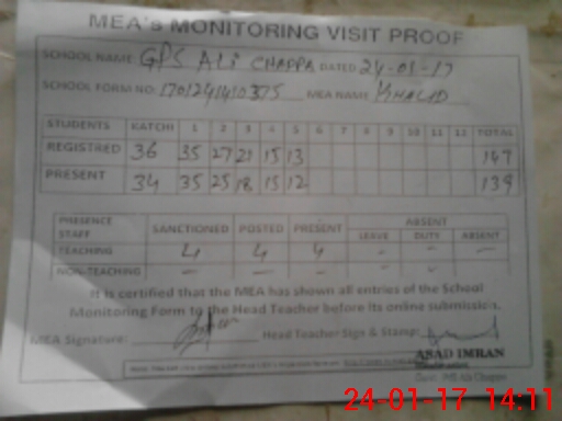 | EMIS Code: 36410261 | Name of School: GPS ALI CHAPPA, P/O 9-B/8-R, ABDUL HAKIM | |||