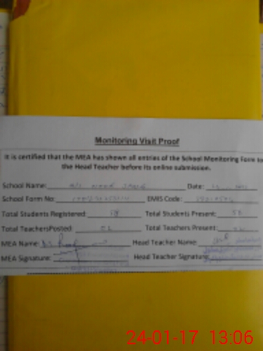 | Certified that this School was Inspected by the Undersigned MEA/DMO Today and the Information Stated Above is as Per Record. | |||||