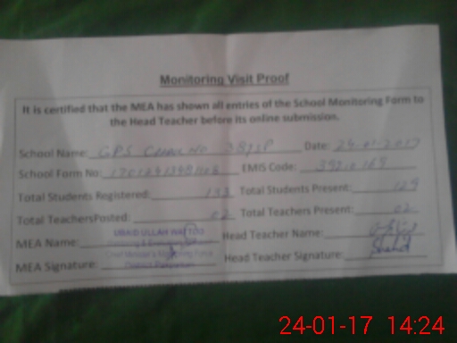 | Certified that this School was Inspected by the Undersigned MEA/DMO Today and the Information Stated Above is as Per Record. | |||||