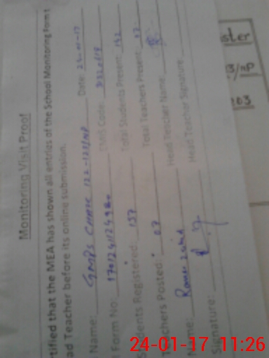 | Attendance Register | Head Teacher | MEA with School | Visit Proof |