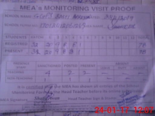 | Certified that this School was Inspected by the Undersigned MEA/DMO Today and the Information Stated Above is as Per Record. | |||||