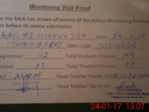 | EMIS Code: 31310448 | Name of School: GGCMS CHAK NO. 73/A | |||