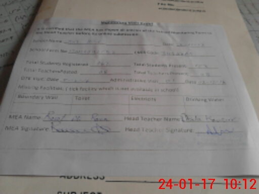 | Attendance Register | Head Teacher | MEA with School | Visit Proof |