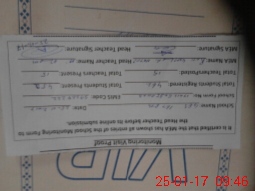 | Certified that this School was Inspected by the Undersigned MEA/DMO Today and the Information Stated Above is as Per Record. | |||||