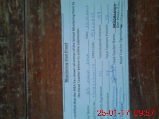 | Attendance Register | Head Teacher | MEA with School | Visit Proof |